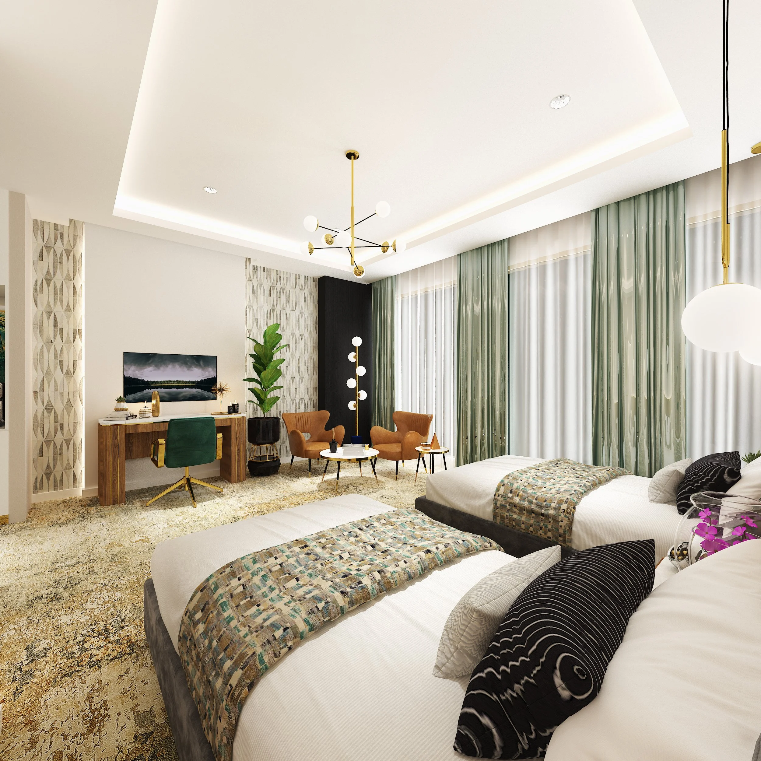 The Abdul Ghani Airport Road 5-Star Hotel, located in the vibrant heart of Doha, is designed with meticulous attention to durability, elegance, and guest comfort. From Deluxe King and Twin Rooms to spacious Bedroom Apartments and Executive, Junior, and Royal Suites, every space reflects refined luxury through warm earthy palettes and a calming, contemporary atmosphere.