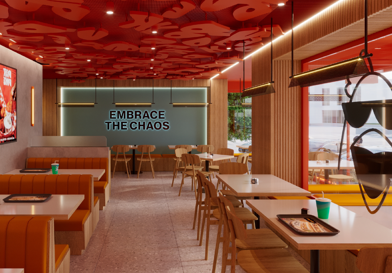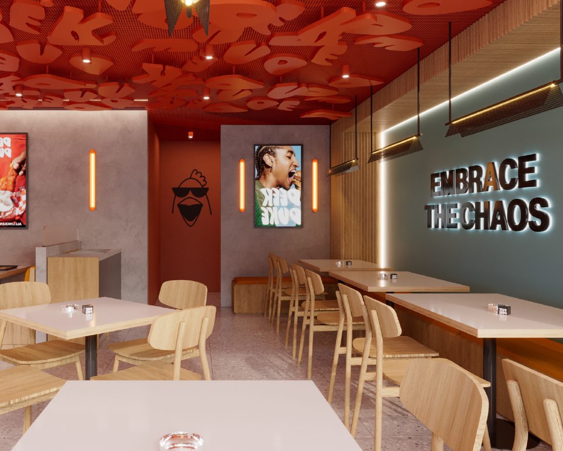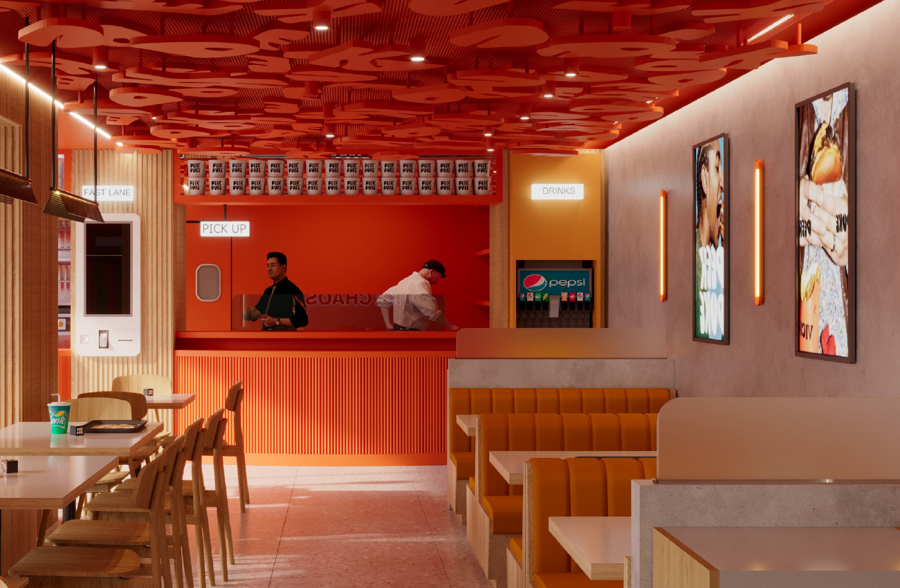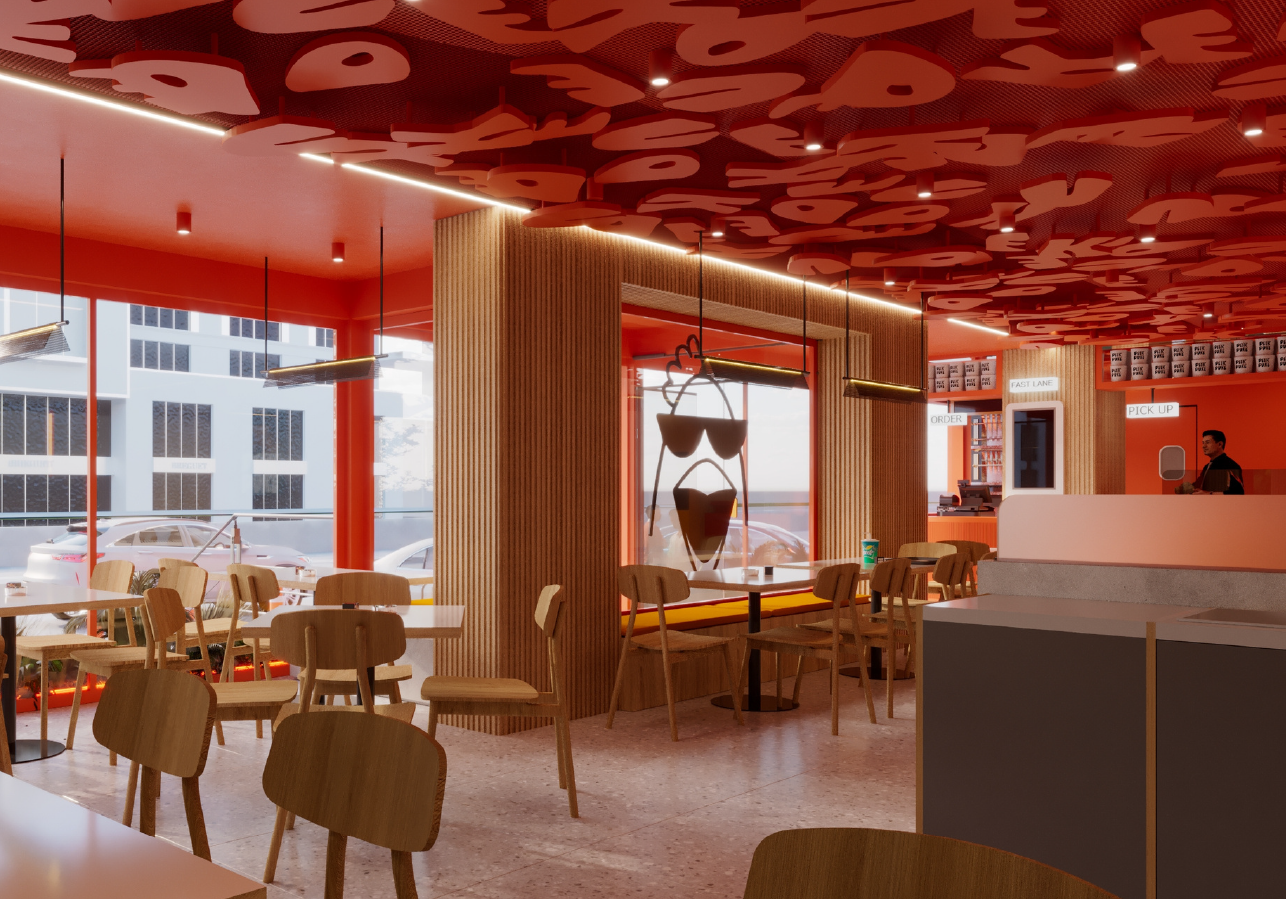 From a design perspective, the space balances industrial textures with warm, inviting elements. Exposed structural features, dark metallic accents, and statement lighting create depth and character, while natural wood finishes and curated greenery soften the ambiance. The bar, often the focal point, anchors the venue with a strong material identity—rich surfaces, bold detailing, and a lighting composition that frames it as both stage and sculpture.