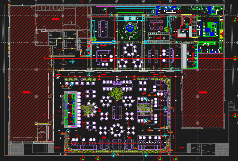 During design development, key elements required precision: the rug selections and compositions, the wooden ceiling doors, and the brickwork reinforced with hidden metal strips. The bar showcases a CNC wooden front, marble countertop, and illuminated stenciled metal shelving. The custom chandeliers were assembled from selected crystal bottles, engineered with hidden dimmable lighting to softly illuminate the space.